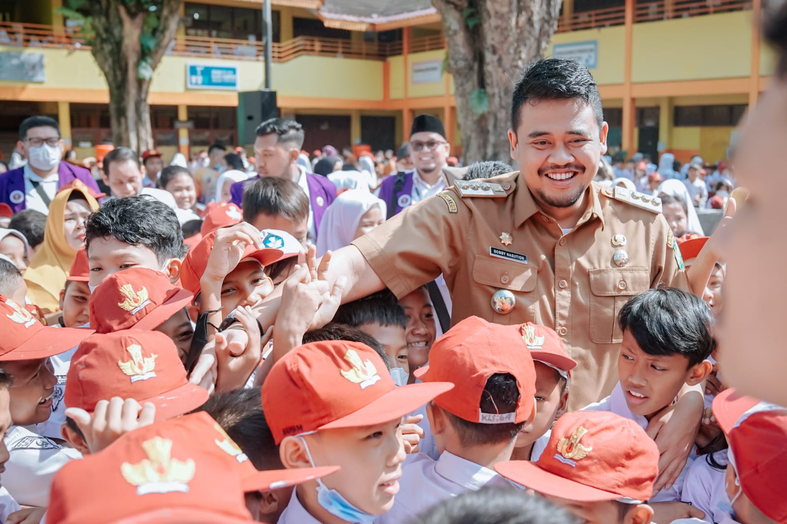 Bobby Nasution saat menyapa siswa SD di kegiatan sikat gigi massal yang digagas Persatuan Dokter Gigi Indonesia Kota Medan. (Foto: Istimewa)